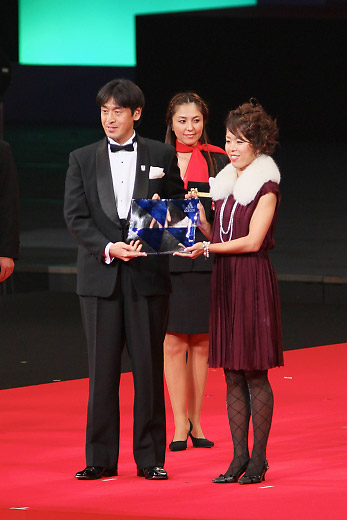 最優秀主審賞は2010年南アフリカワールドカップでも笛を吹いた西村雄一氏。プレゼンターは日テレベレーザの岩清水梓選手。「先日の女子ワールドカップの最終戦で、審判からレッドカードをもらい退場になった私が、このような賞のプレゼンターを務めていいのでしょうか?」というスピーチで場内の笑いを誘っていた。
